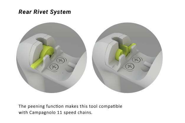 Derudover kan den også bruges til præcist at indsætte pind i 11 speed Campagnolo kæder.