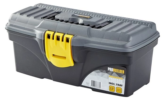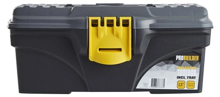 Inde i værktøjskassen er der en bakke i toppen til organisering af værktøjet.