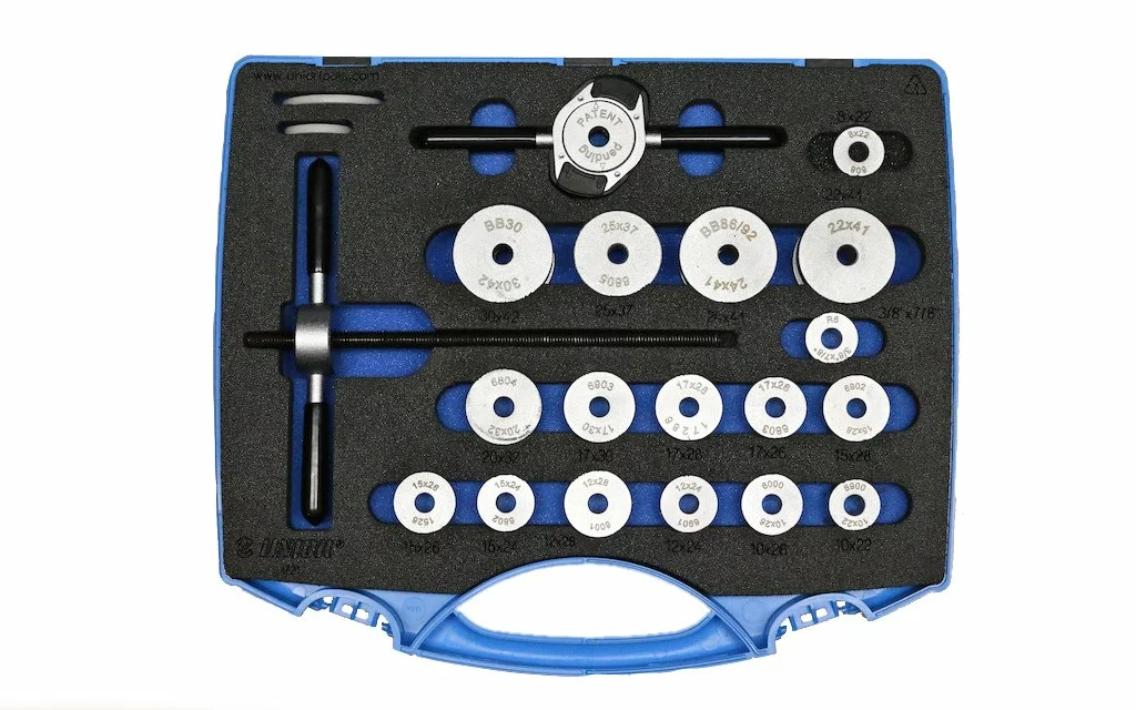 Indeholder adaptere til langt de fleste lejer, både til nav, krankbokse osv., samt to plastik spacere til at beskytte sarte dele som fx carbon stel.